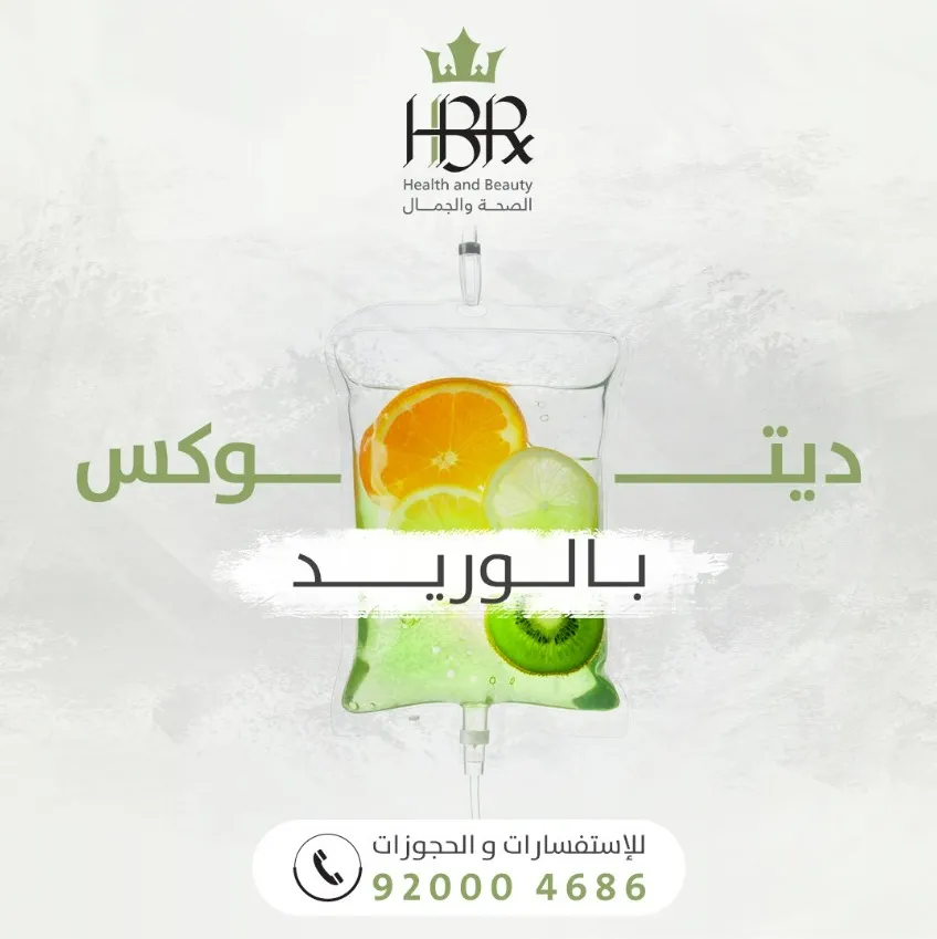 في زحمة الحياة، الجسم يتعرض لتراكم سموم من: أكل غير صحي – توتر – أدوية – تلوث – قلة نوم… والنتيجة؟ تعب، صداع، بشرة باهتة، هضم بطيء، ونفسية مضغوطة! الحل جلسة ديتوكس بالوريد. كوكتيل مغذيات يُعطى مباشرة للدم، يساعد جسمك ينظف نفسه من الداخل: • مضادات أكسدة قوية. • فيتامينات ومعادن تنشط الكبد والجهاز المناعي. • ترطيب عميق بالسوائل. • تحسين الطاقة والتركيز والمزاج. جلسة وحدة… تحسّ بالفرق من أول يوم. موضة؟ لا. أسلوب حياة؟ نعم، خصوصًا إذا تهتم بنفسك من الداخل.